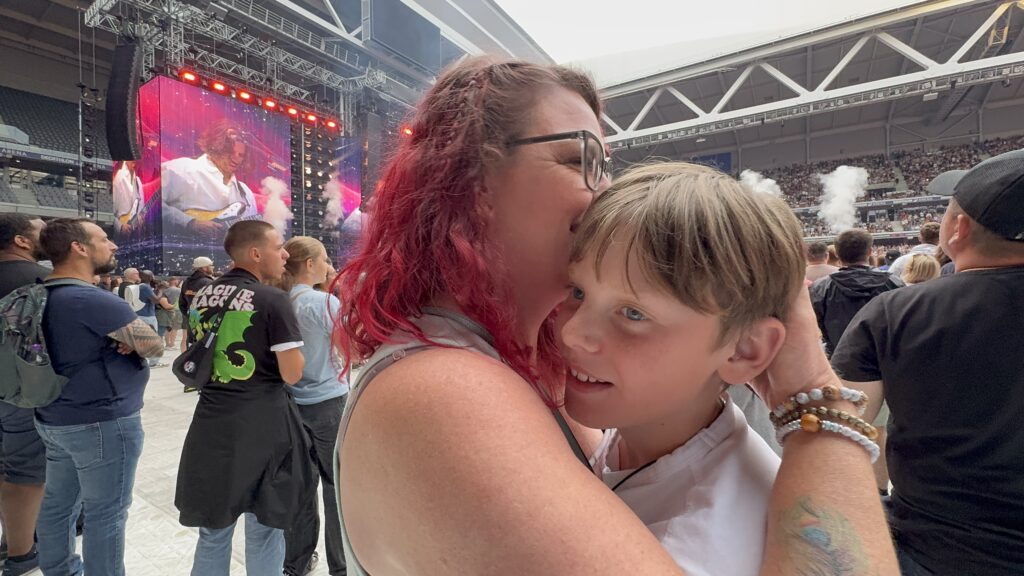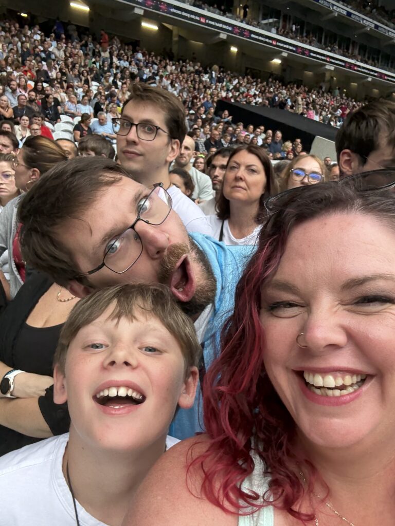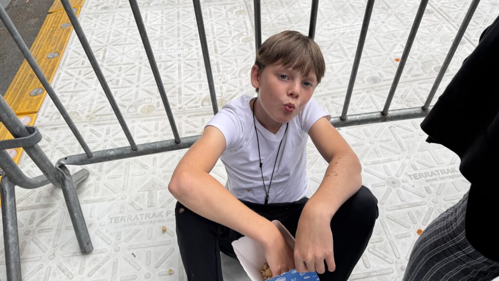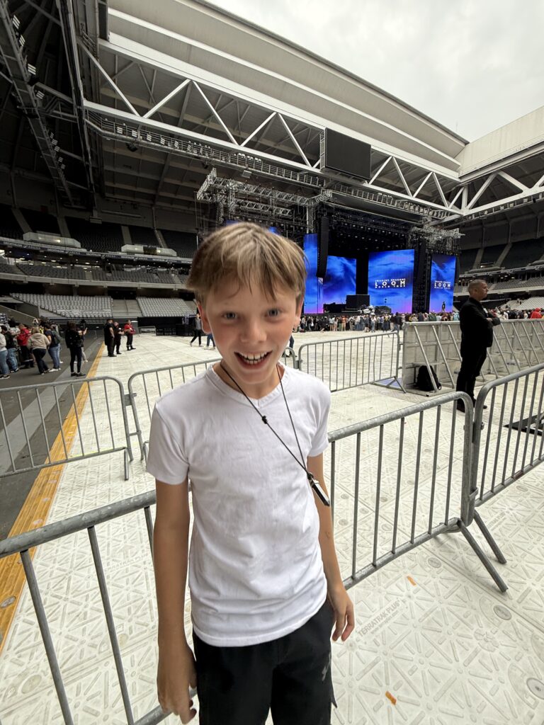 The lines were already massive when we arrived, but we didn’t care. There was food, wine and ice cream trucks nearby, and the anticipation was electric. We all got a treat and waited patiently. When the band finally came on, the look on Z’s face — singing every word, a tear in his eye — was everything. Three hours of pure magic. One of those nights you know will live in your heart forever. The next day, he even had what I can only describe as an emotional hangover.
