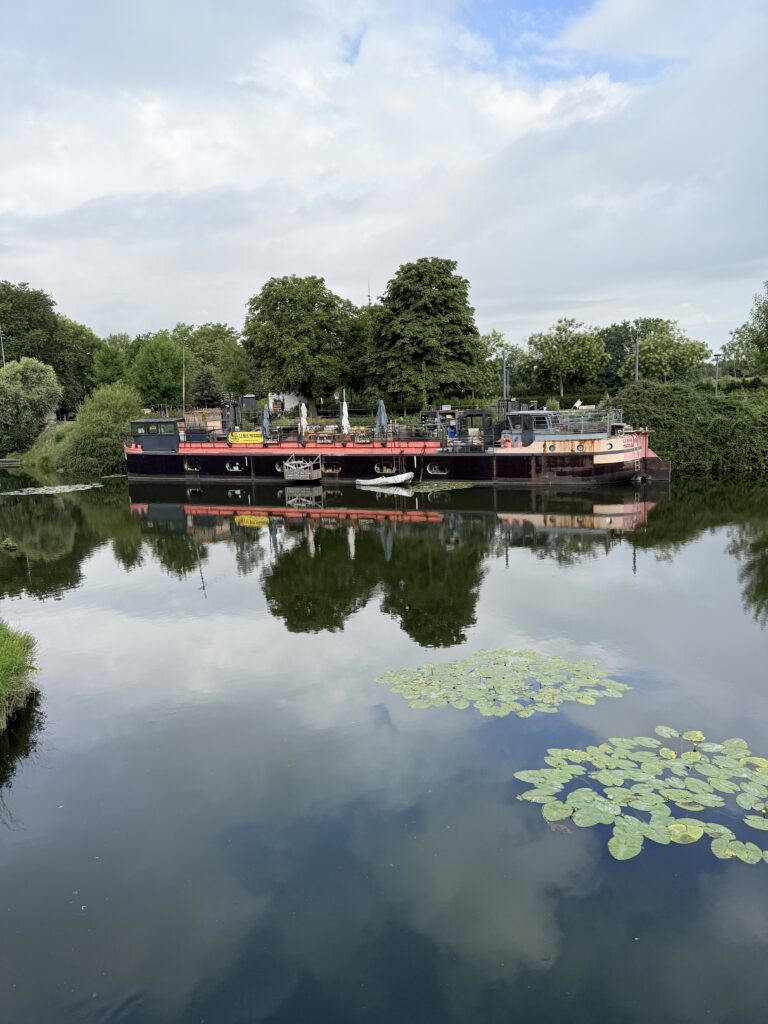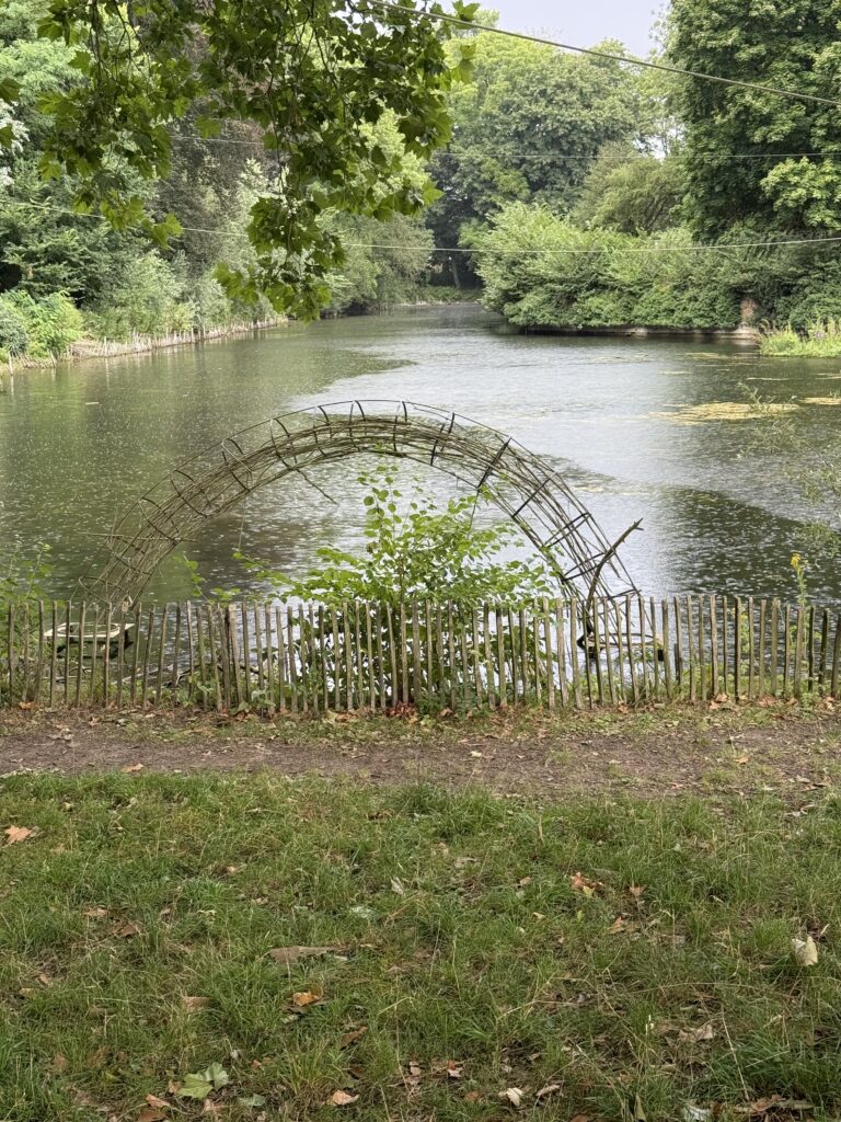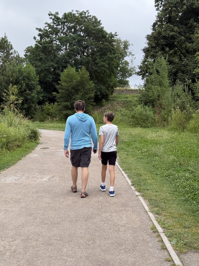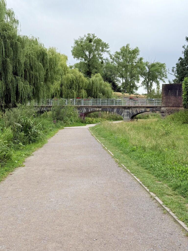 The next day was the big one — Imagine Dragons Day. Z woke up vibrating with excitement, so we had to get him out of the hotel before he exploded. About a 20-minute walk from our hotel is Parc de la Citadelle, a huge green park with a zoo, an amusement area (Cita Parc), and one of the best ropes courses I’ve ever seen — complete with a zip line over a lake. It was still early, so everything was closed, but we walked the trails anyway, surrounded by morning light. Then, out of nowhere, the sky opened up. We huddled under a tree, laughing, until the rain eased. We’ll definitely go back one day to see the rest.