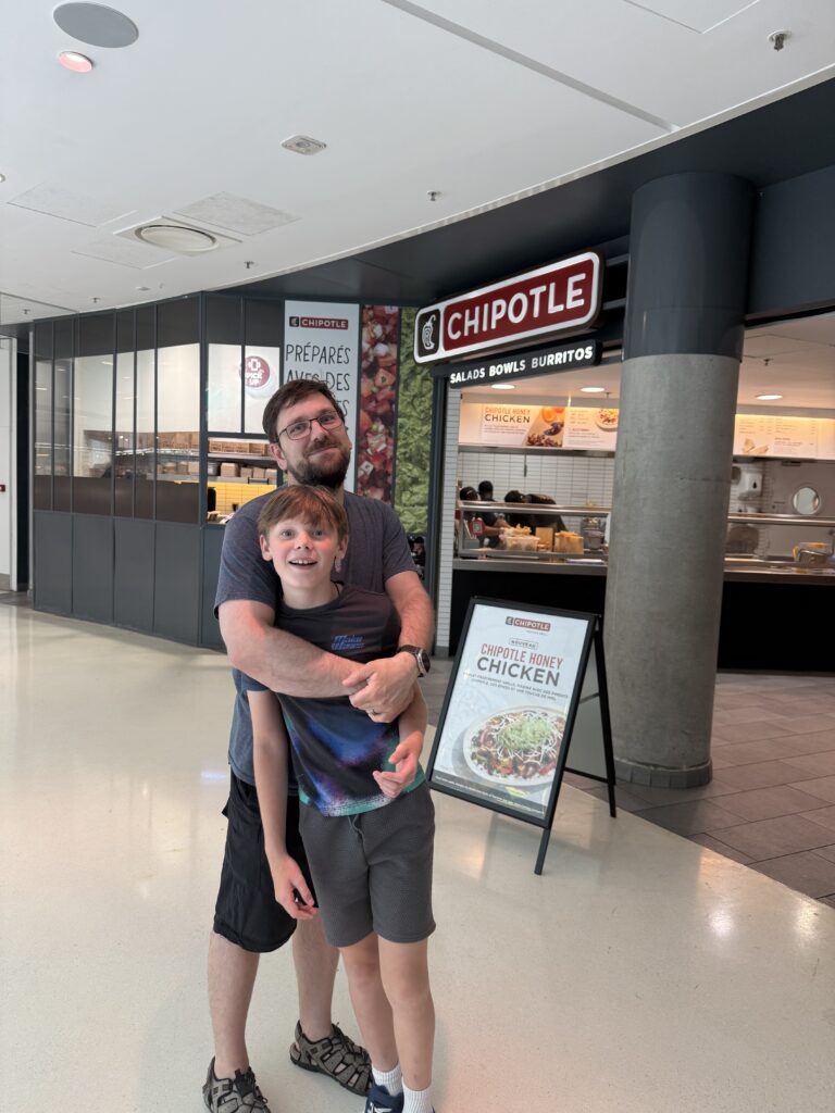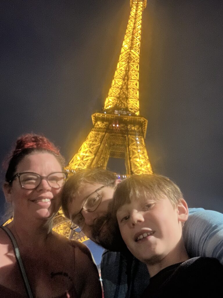 Next stop: Paris. Just a quick hour-and-a-half train ride away. We checked in and went straight to Chipotle, of course. Rob and Z’s excitement was contagious, and honestly, seeing my boys so happy made me happy too. I would eventually go back and try one of the many French bistros on my list. That night, we took a slow walk to see the Eiffel Tower all lit up — We had only been to Paris during the day so this was something we’d never done before. It really is every bit as stunning as you’d imagine.