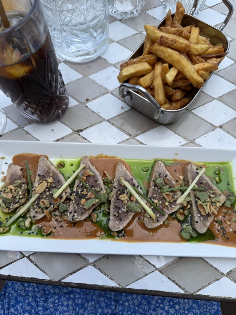 Too early to check in, we left our bags and grabbed lunch at a sea side retauant and hit the pool. That night, we found Jack the Cockerel, a lively spot with sea views. Z — my picky eater — even tried and loved the fish and chips. It was so good we went back for lunch a few days later.